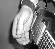 LE DAMPING : Lorsqu'on accompagne des morceaux rapides, le fait de laisser sonner toutes les cordes finit par donner un son brouillon, et perturbe le rythme, surtout lorsque l'on joue à plusieurs. Il faut alors étouffer le son une fois produit en appuyant légèrement le bas de la paume de la main droite sur les cordes : C'est ce qu'on appelle le damping... Cet effet n'est pas noté dans les tablatures, c'est à vous de sentir dans quelles circonstances il convient d'assourdir votre jeu...